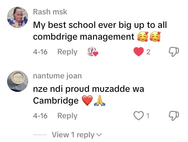 Am so proud of cambridge, it taught me how to be discplined by moses.. I am a proud parent of cambridge by maama david